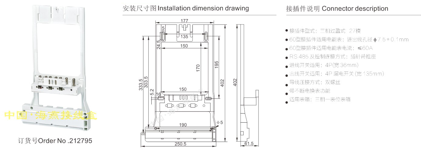 产品分类:三相一体式电能表接插件27模445-447