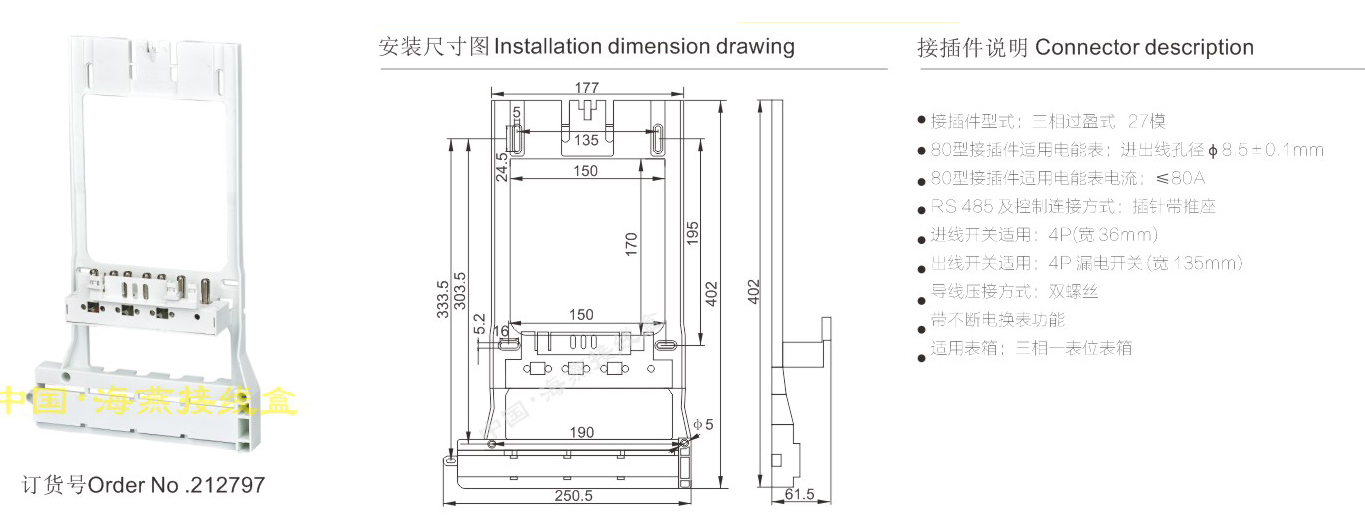 英文名称:Three-phase interference electric energy meter connector (integrated)