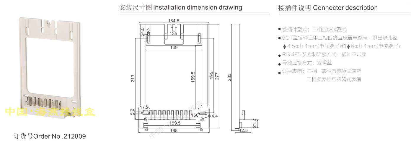 产品分类:三相互感电能表接插件不带联合接线盒452