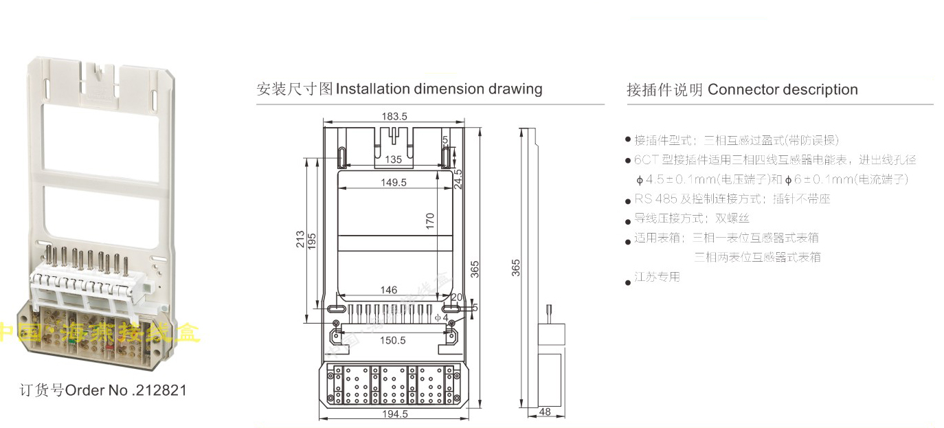 产品分类:三相互感电能表接插件与联合接线盒单独组合458