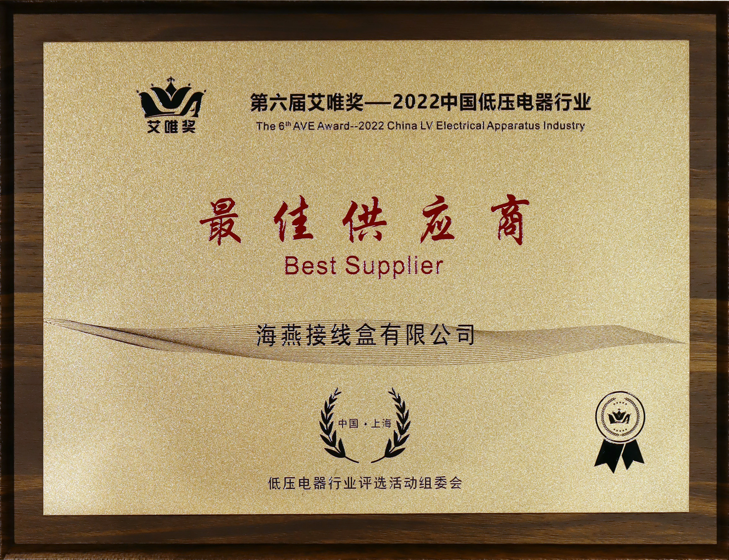 2023年5月18日,第六届艾唯奖颁奖典礼在上海环球港凯悦酒店隆重举办,海燕接线盒有限公司获得第六届“艾唯奖”《低压电器行业专精特新企业》和《低压电器行业最佳供应商》两项荣誉。获此殊荣,是行业专家及市场对海燕接线盒20多年,专注接线盒领域研发制造品质的认可。